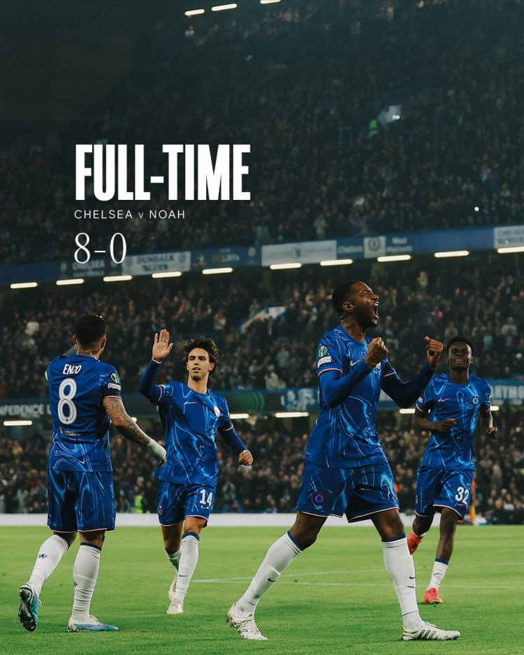 切尔西8-0诺亚创欧协联历史最大分差 恩佐3助恩昆库菲利克斯双响