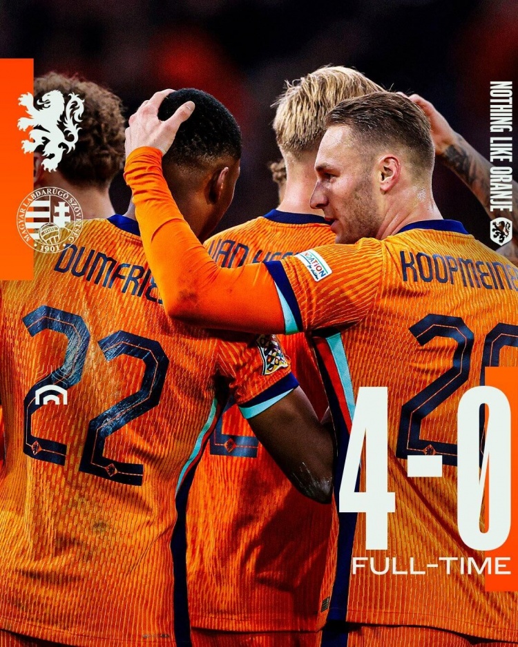 11月17日讯 北京时间11月17日3:45,欧国联A3组第5轮,荷兰主场迎战匈牙利。上半场,韦霍斯特点射首开记录,马伦造点,加克波主罚再下一城。下半场,韦霍斯特远射击中横梁,邓弗里斯抽射扩大比分,库普梅纳斯头球破门。最终,荷兰4-0战胜匈牙利,终结3轮不胜,5轮2胜2平1负积8分排名小组第二,晋级八强。