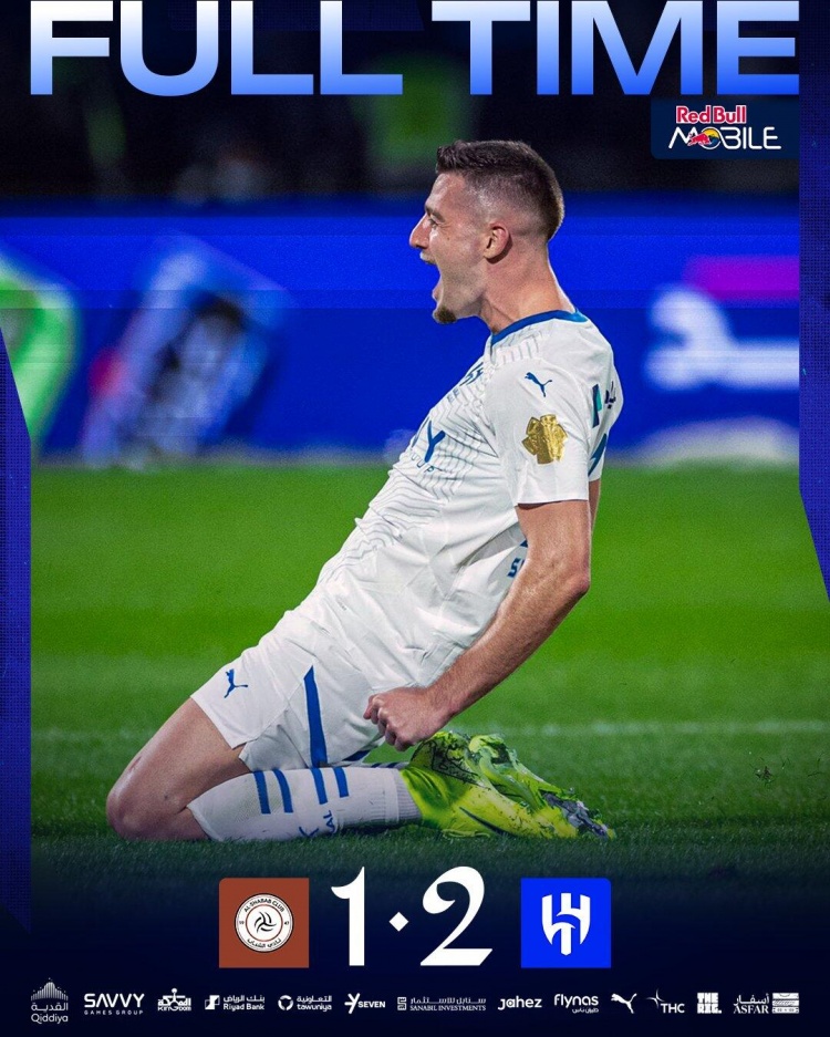 利雅得新月首发:37-布努、20-坎塞洛(91'12-沙赫拉尼)、3-库利巴利、5-布莱希、6-雷南-洛迪、28-卡努(91'16-纳塞尔-多萨里)、22-米林科维奇、15-阿尔卡塔尼(49'87-坦巴克蒂)、29-萨勒姆-多萨里、77-马尔科姆、9-米特洛维奇