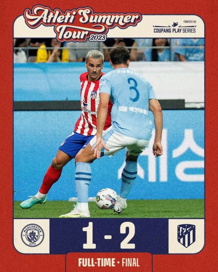 直播7月30日讯 北京时间7月30日晚上19:40,曼城与马竞进行一场友谊赛。上半场,莫拉塔失良机。下半场,沃克重炮中框,德佩、卡拉斯科先后远射建功,迪亚斯扳回一球。全场结束,曼城1-2马竞。