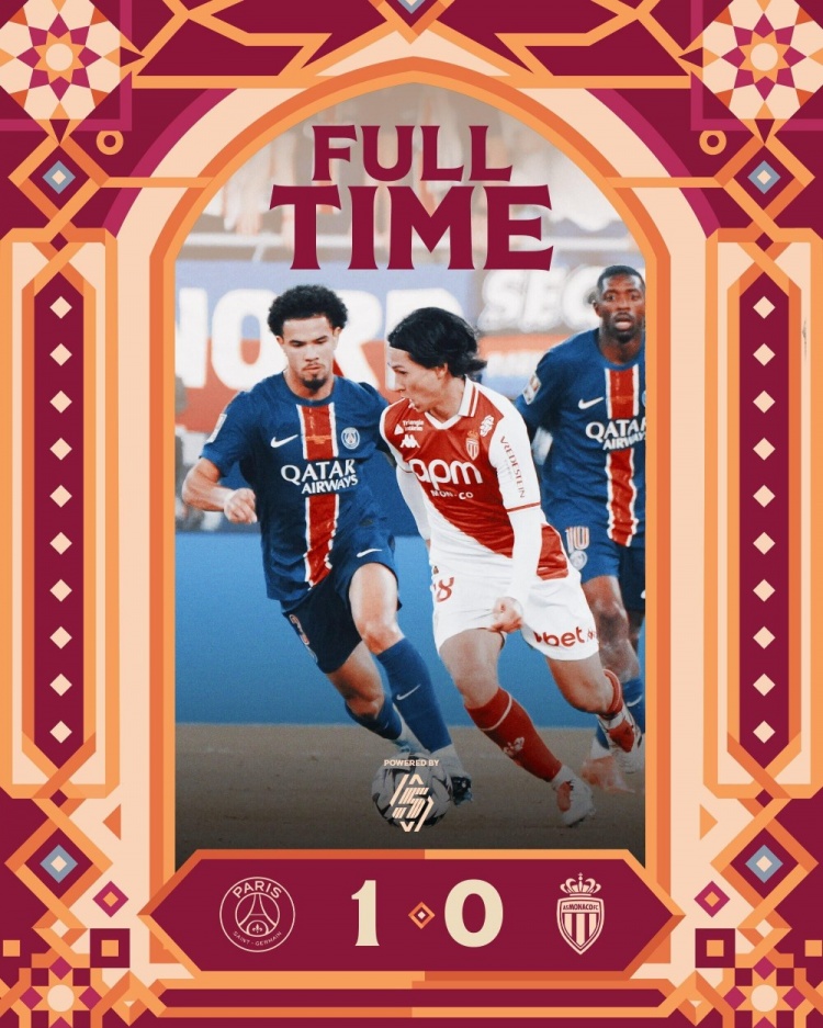 全场比赛结束,巴黎圣日耳曼1-0摩纳哥。