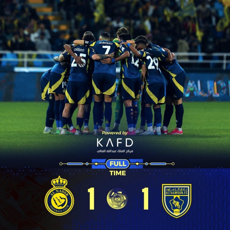 沙特联-利雅得胜利1-1布赖代合作距榜首11分 拉波尔特头球建功
