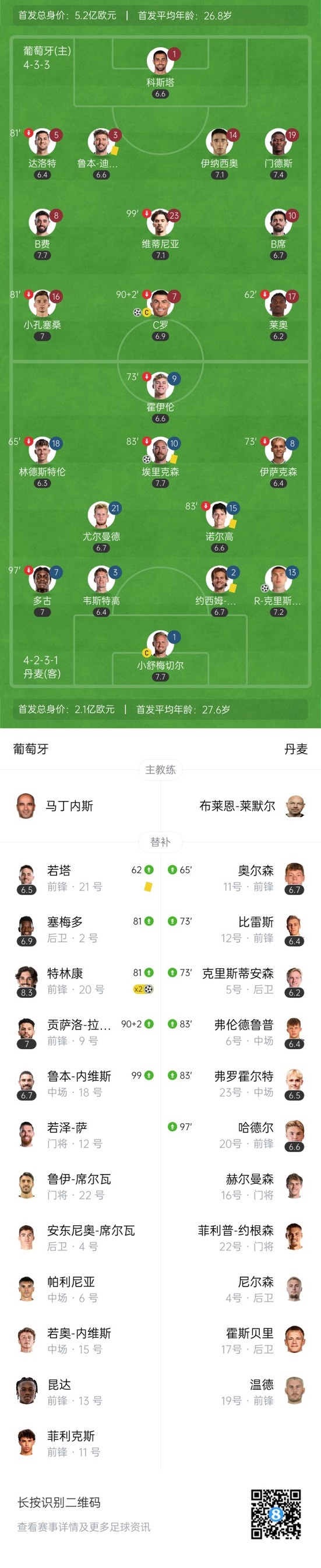 最终,葡萄牙5-2丹麦。