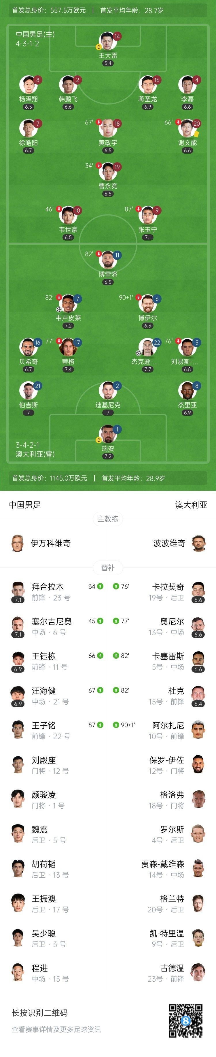 超级双误!国足0-2澳大利亚 黄政宇王大雷送礼 塞鸟王钰栋首秀