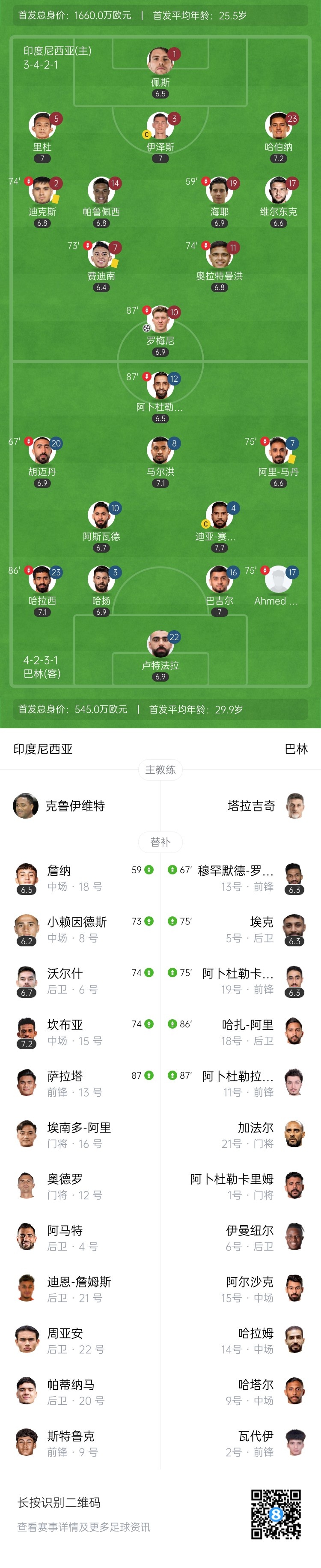 伤停补时4分钟。全场比赛结束,印尼1-0巴林。