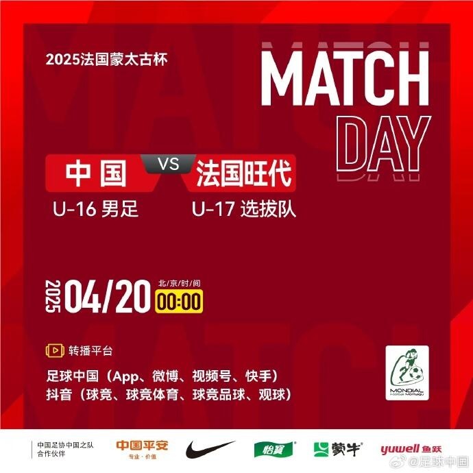 4月20日讯 北京时间4月20日凌晨0时整,2025年蒙太古U16小组赛A组第3轮在法国里班多体育中心展开角逐,中国男足U16对阵旺代省特选队U17。上半场张旭尧失空门,下半场U16国足任意球丢球,谢晋扳平,李钧鹏头球反超。最终U16国足2-1逆转旺代省U17,由于U16法国4-0大胜喀麦隆,U16国足2胜1平排名小组第二,将参加季军赛。