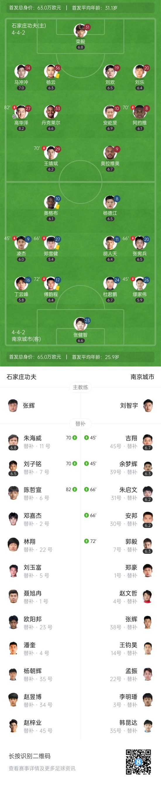 第20分钟,石家庄功夫首开记录!南京后场失误,高华泽抢断后到禁区点球点附近抽射破门,石家庄功夫1-0南京城市。↓