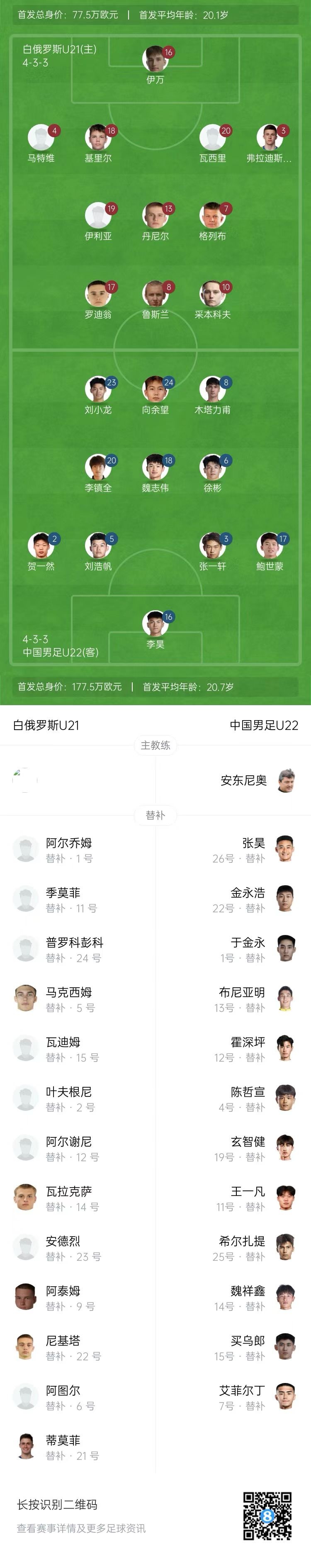 友谊赛-U22男足1-1白俄罗斯U21 木塔力甫角球头槌刘小龙争议送点