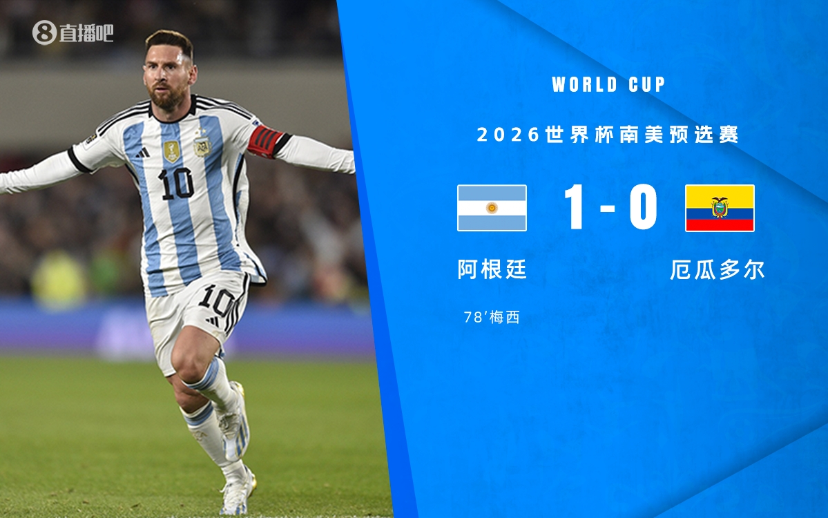 9月8日讯 世预赛南美区第1轮,阿根廷坐阵主场迎战厄瓜多尔。上半场,梅西弧顶位置远射造险,德保罗送出精妙斜塞。劳塔罗上演经典左右互搏,最后时刻劳塔罗倒地铲射中柱。易边再战,恩佐门前错失补射良机,梅西任意球直奔死角破门。最终阿根廷1-0厄瓜多尔收获本次世预赛开门红。