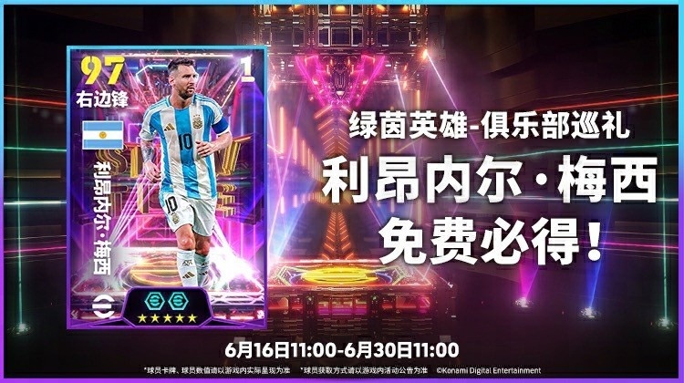 世俱杯期间登录实况足球参加【绿茵英雄 俱乐部巡礼】活动,通过完成每周登录任务及参与绿茵英雄相关的活动获得英雄徽章,通过兑换所消耗代币, 必得【双增能梦幻精选梅西】或【世俱杯精选球员】二选一,同时还将有海量世俱杯赛事活动上线,参与活动最高可免费获得780金币!【点击下载】