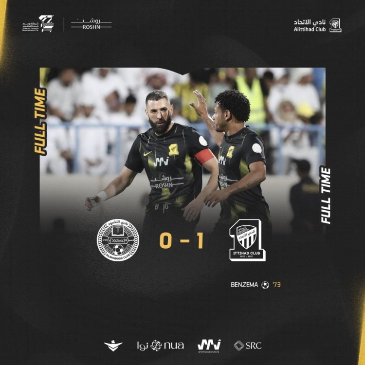 沙特联-吉达联合1-0阿科多暂登榜首 本泽马膝盖撞射制胜