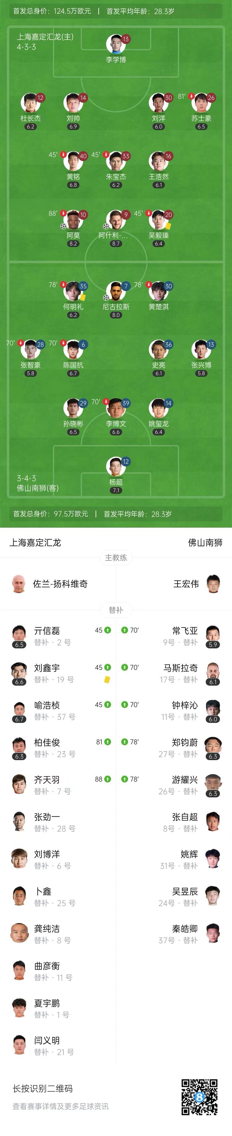 中甲-上海嘉定汇龙2-1送佛山南狮4轮不胜 科菲传射阿莫建功