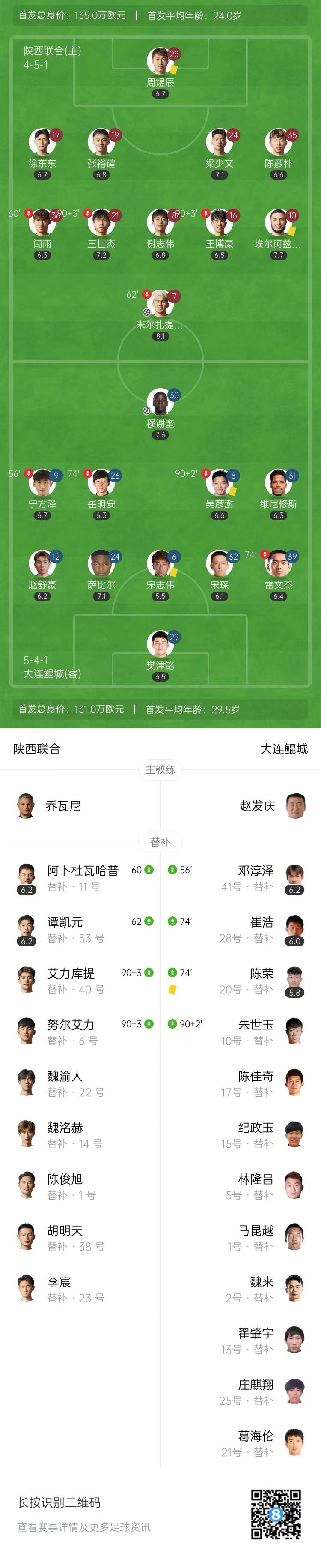 第24分钟,陕西联合角球开出,禁区中路艾力跃起头球攻门,皮球应声入网,陕西联合取得领先,1-0!↓