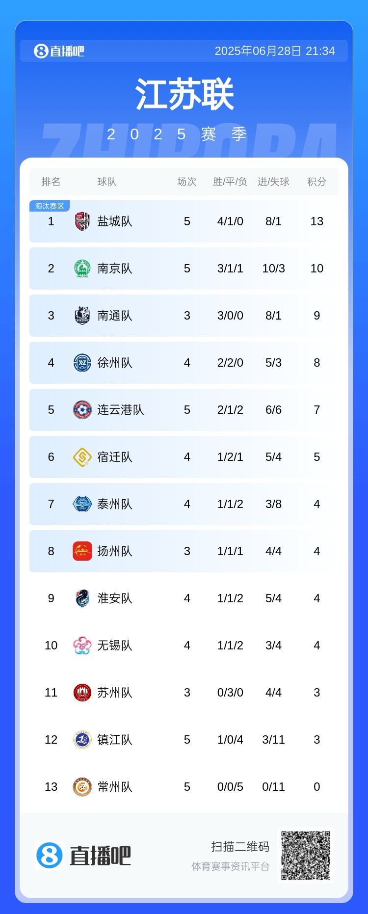 重回榜首!苏超-盐城队2-0镇江队升至苏超第1 镇江4轮不胜仍倒2